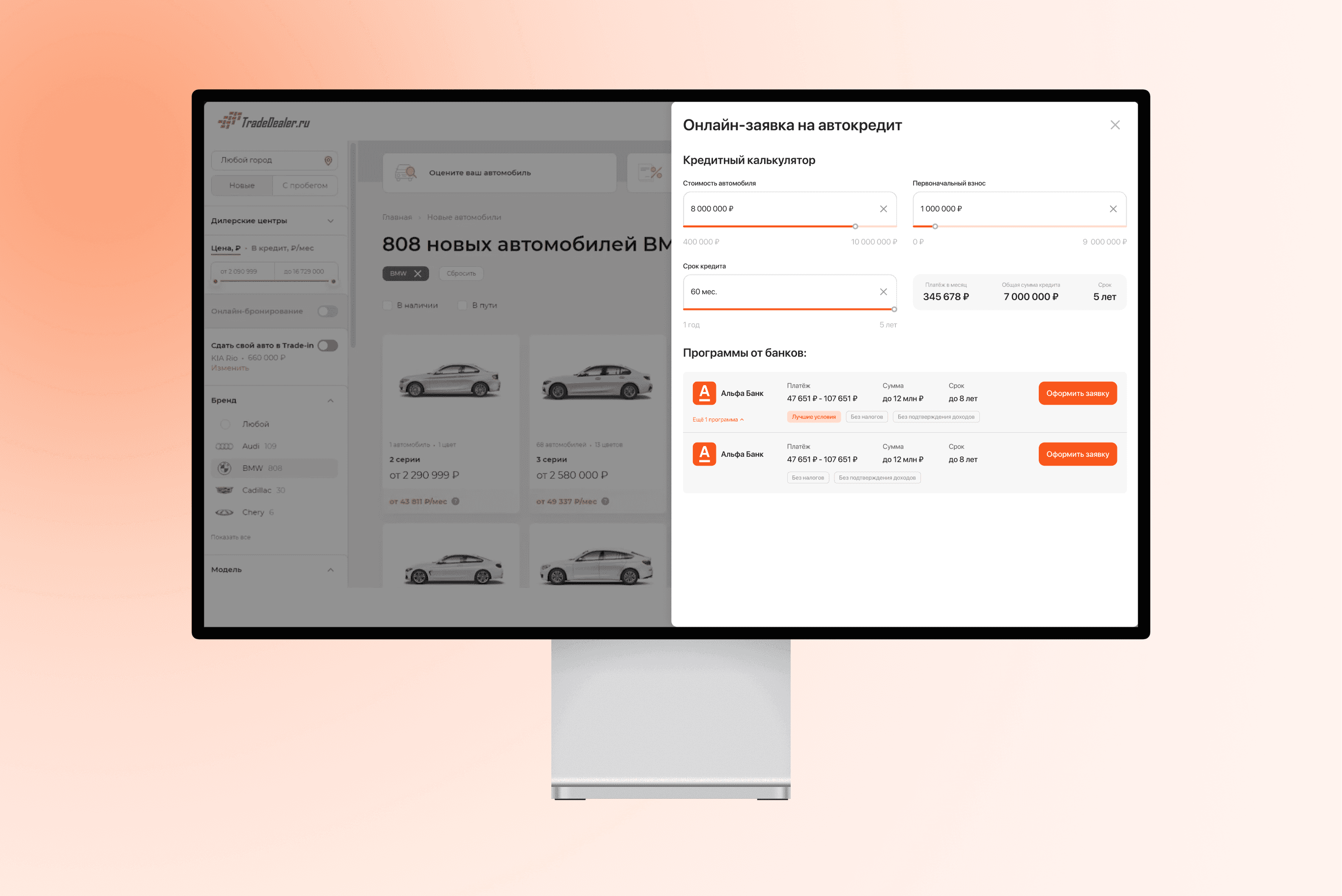 Я отвечал за анализ пользовательского пути, проектирование кредитного калькулятора и редизайн формы подачи заявки на автокредит.